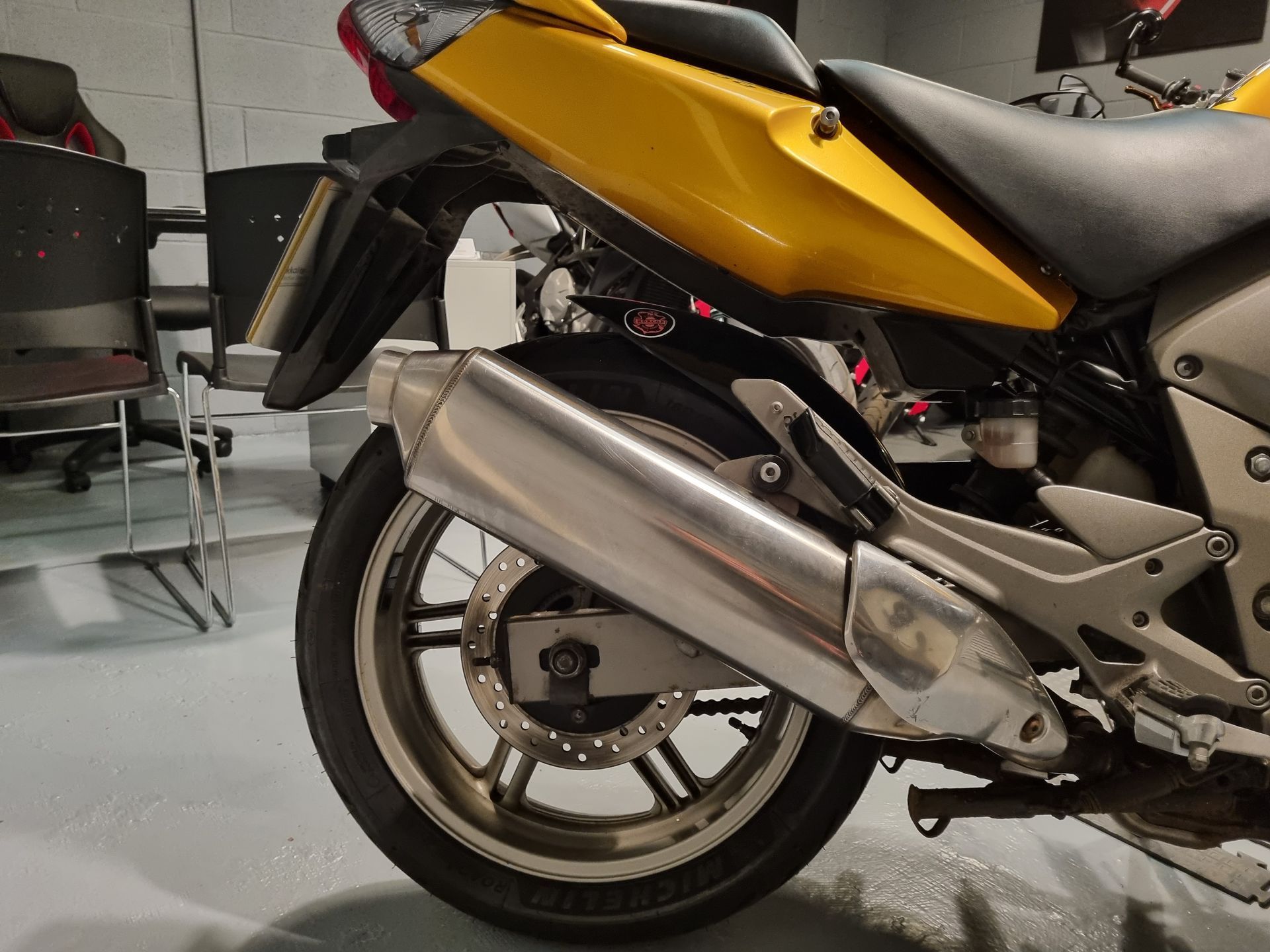 Here we have a 2010 Honda CBF 1000 in gold with 23K on the clock. All her keys and booklets. VSGH. She benefits from a Rear Hugger and Uprated Screen. Overall the bike is in good shape, she has a few age related marks as per the pictures, but nothing untoward. She runs and rides well. A great (bullet proof) engine, lots of power, and easy to ride. They make a great tourer, commuter or second bike. She will eat up the miles.