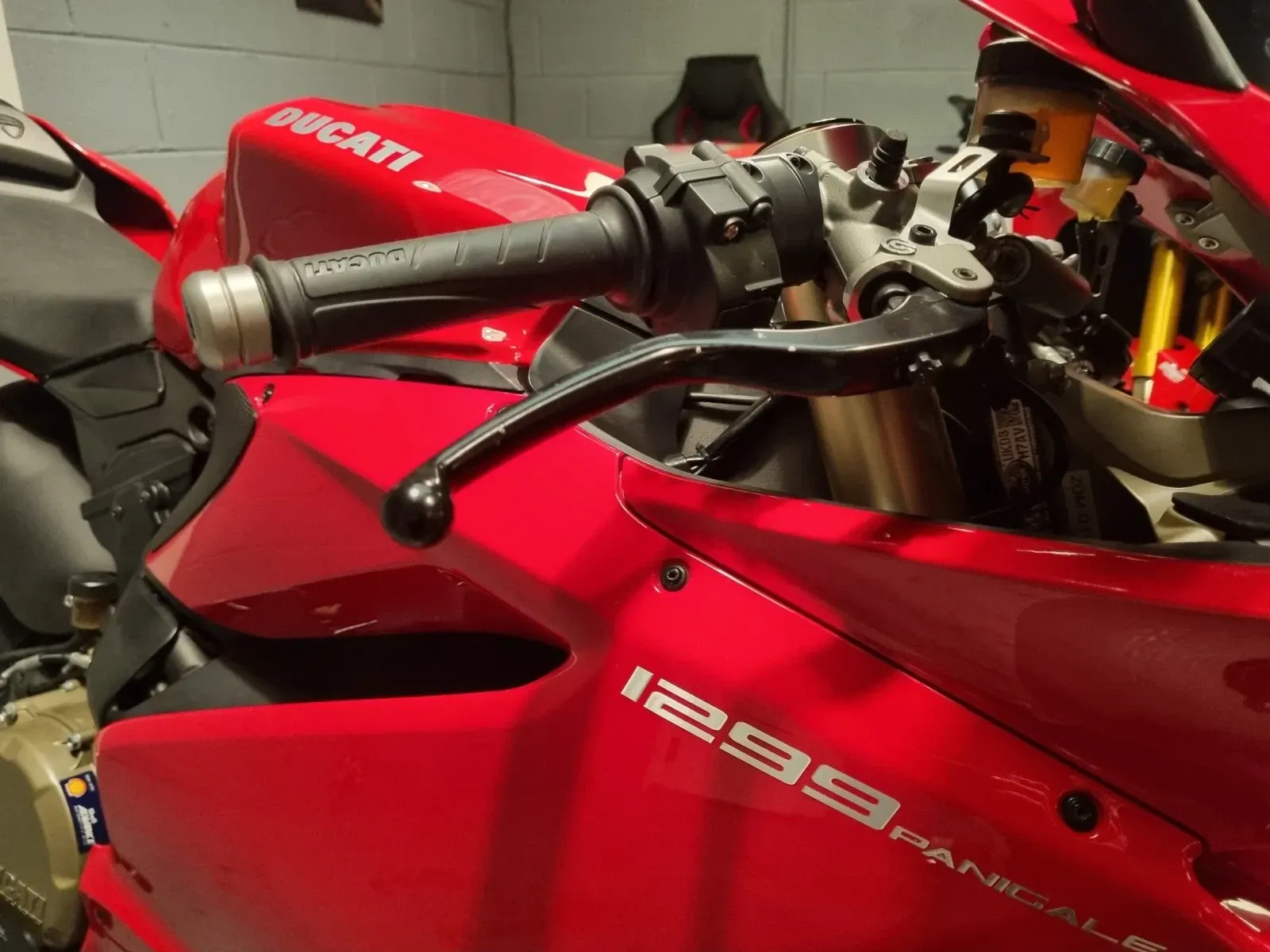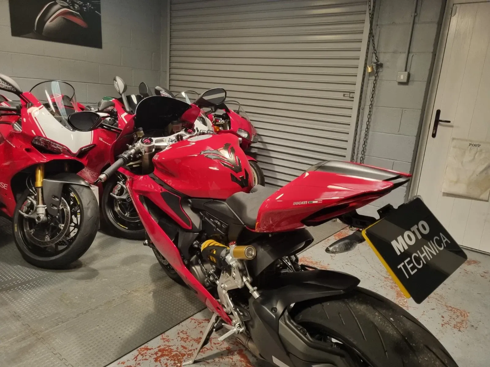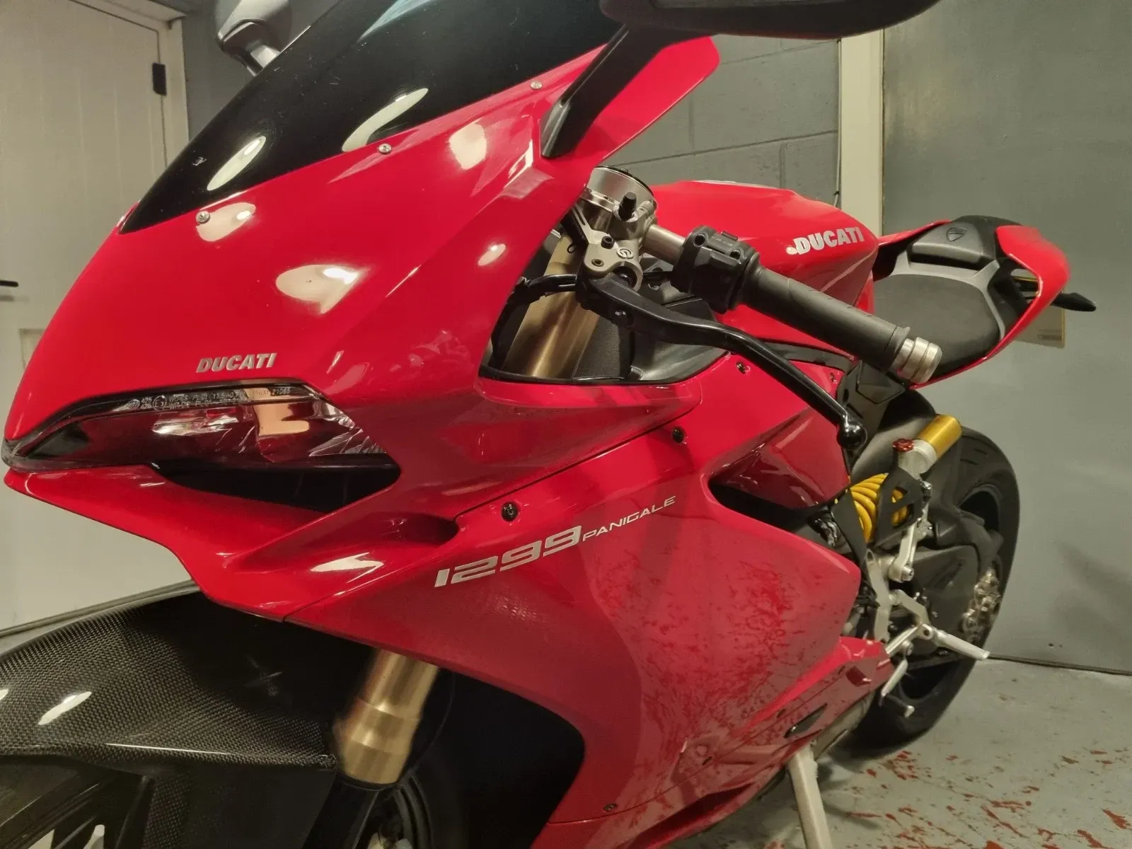 New in for sale at Moto Technica Ltd is this lovely Ducati Panigale 1299. This UK model is a great example and has covered 11,831 miles with only two pervious owners! This bike comes with Termignoni silencers, LighTech Engine Protection, Evotech Radiator Guards, Tinted Screen, Tail Tidy, Carbon Mudguard, Carbon Heel Plates and Tank Pad. This bike also comes with and the full book pack inc service booklet.