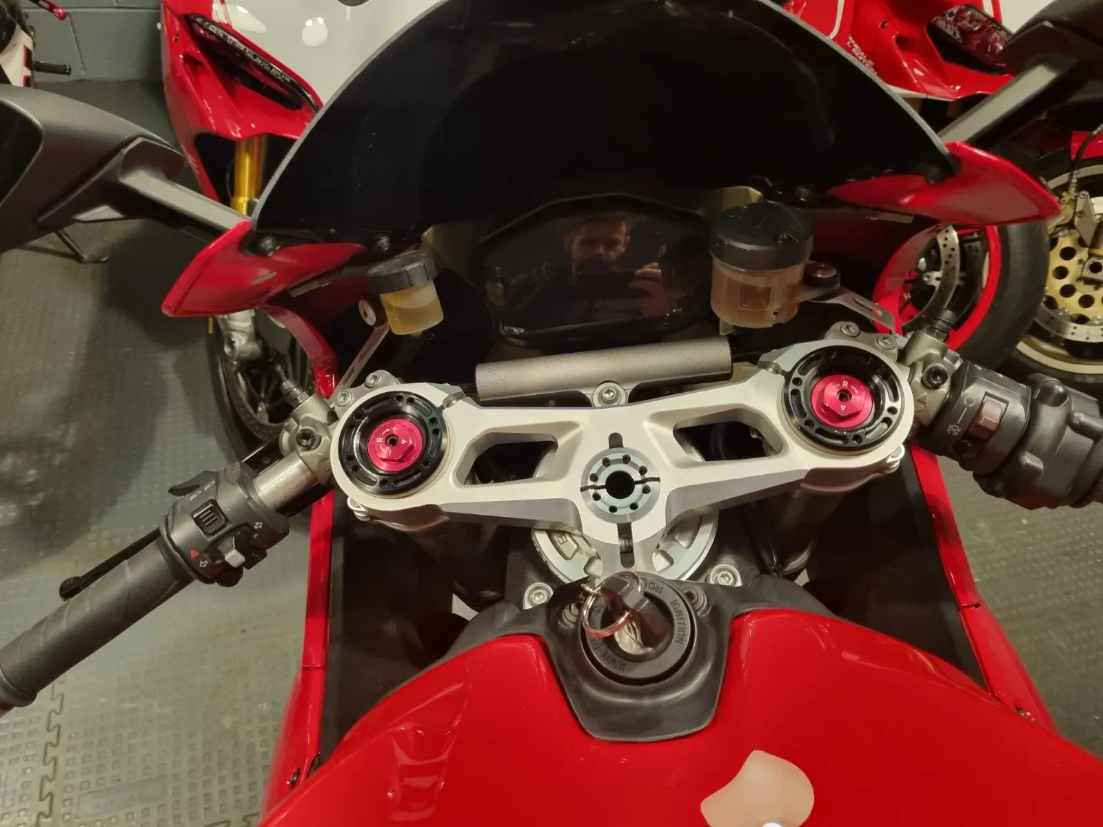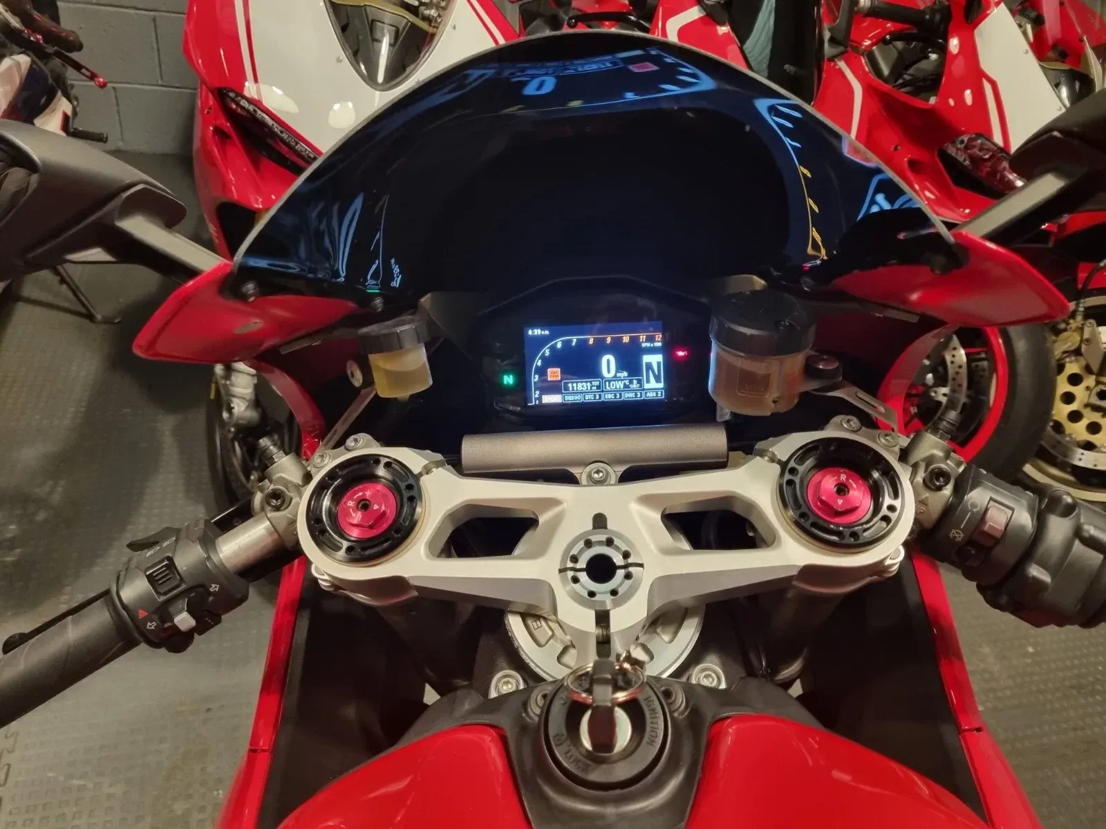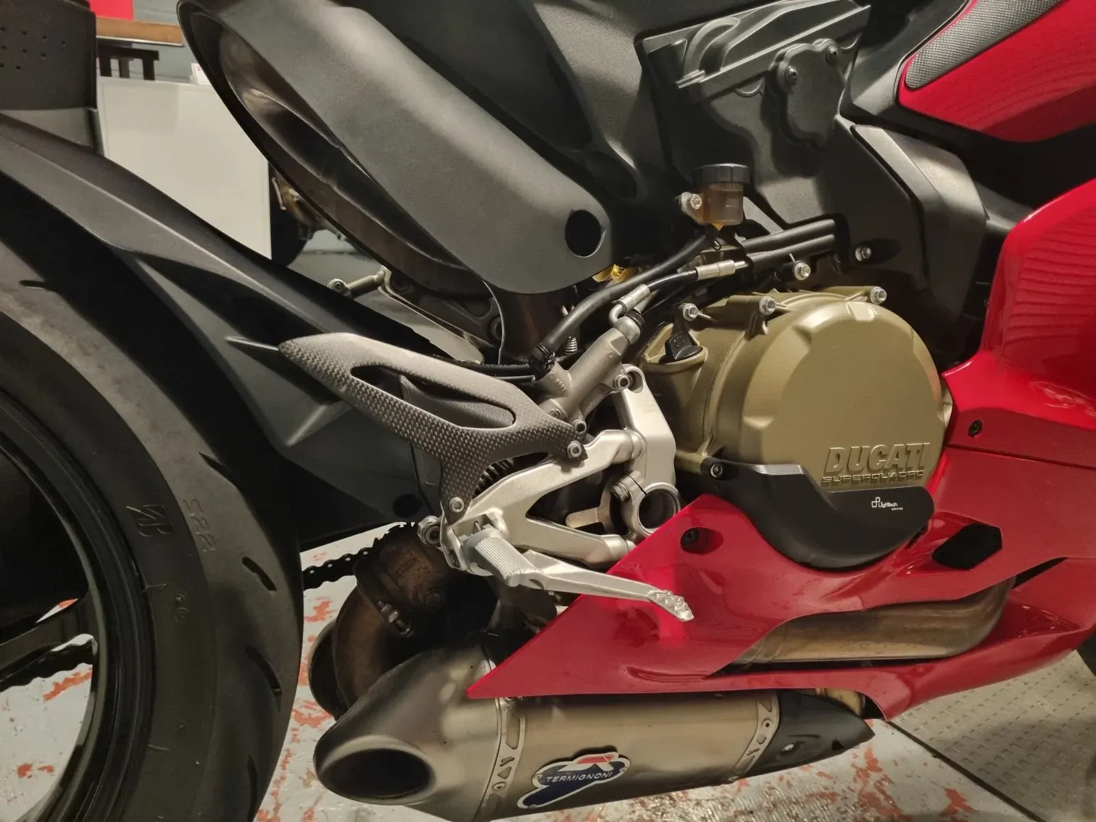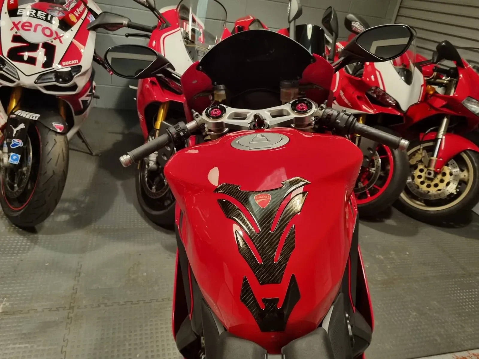 New in for sale at Moto Technica Ltd is this lovely Ducati Panigale 1299. This UK model is a great example and has covered 11,831 miles with only two pervious owners! This bike comes with Termignoni silencers, LighTech Engine Protection, Evotech Radiator Guards, Tinted Screen, Tail Tidy, Carbon Mudguard, Carbon Heel Plates and Tank Pad. This bike also comes with and the full book pack inc service booklet.