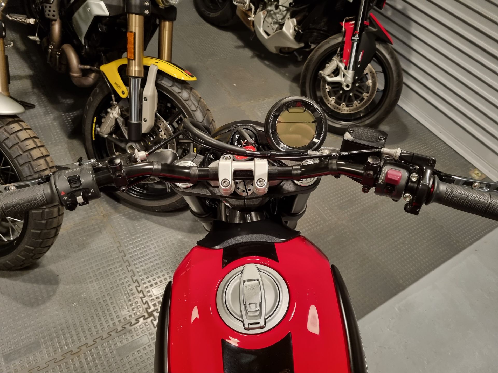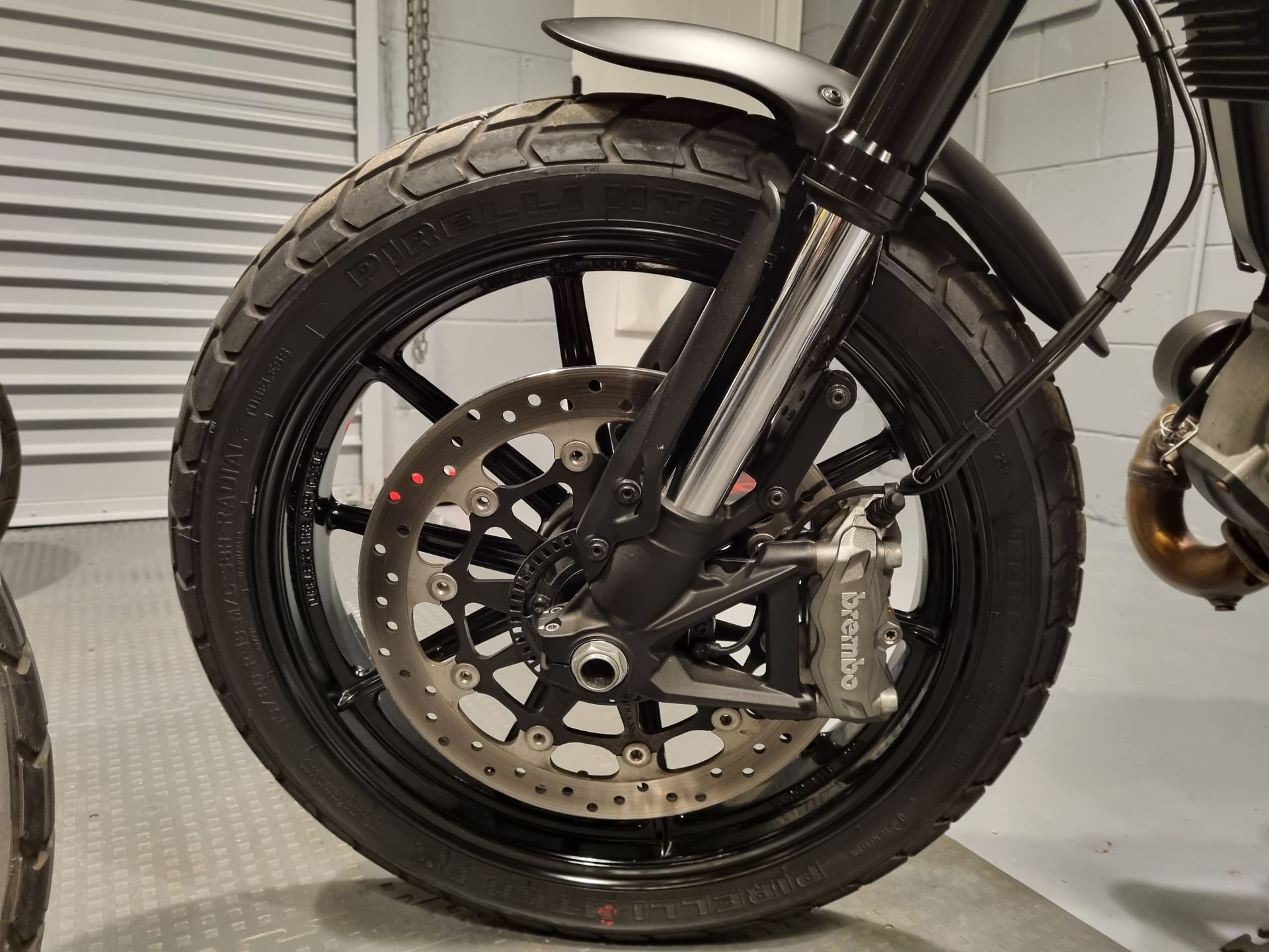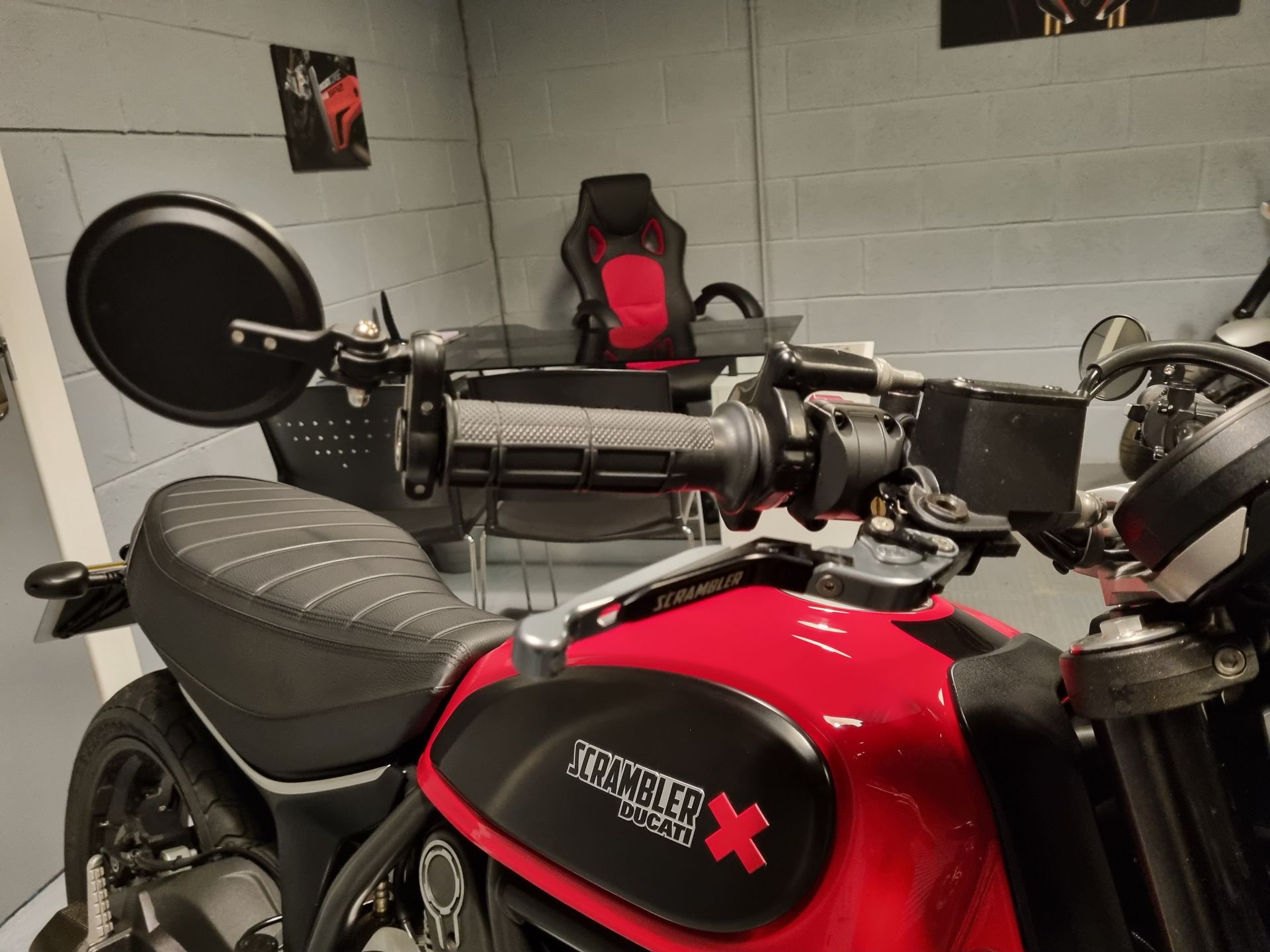 Here we have the popular Ducati Scrambler 800 finished in a cool red with black accent paint scheme. Our UK example has only covered 10856 miles and is supplied with the mag alloy wheels, high seat, black handle bars, adjustable levers, Remus exhaust silencer, bar end mirrors and tail tidy. Comes with two keys, hand book and service book, full service history with the last service just been carried out.