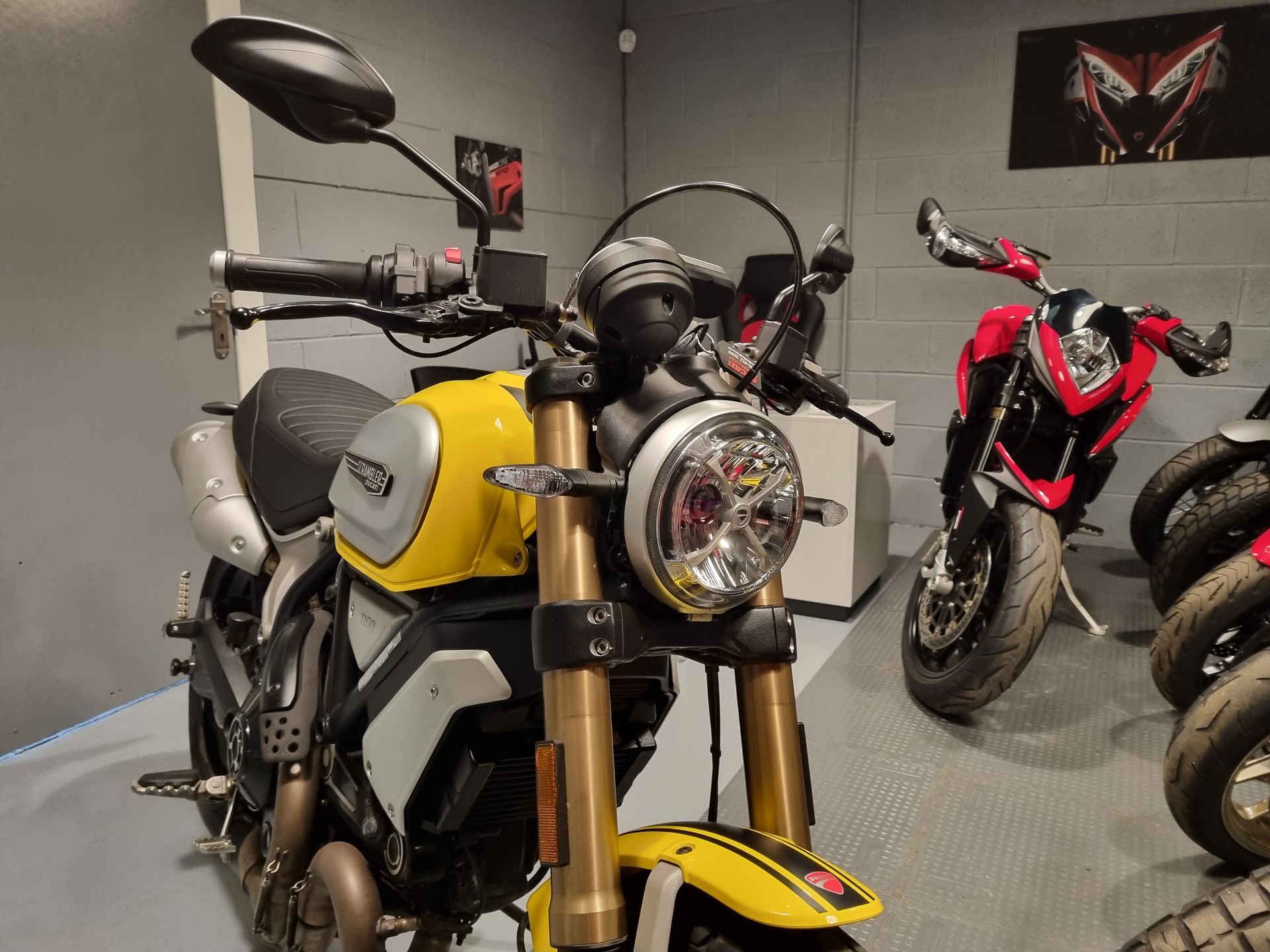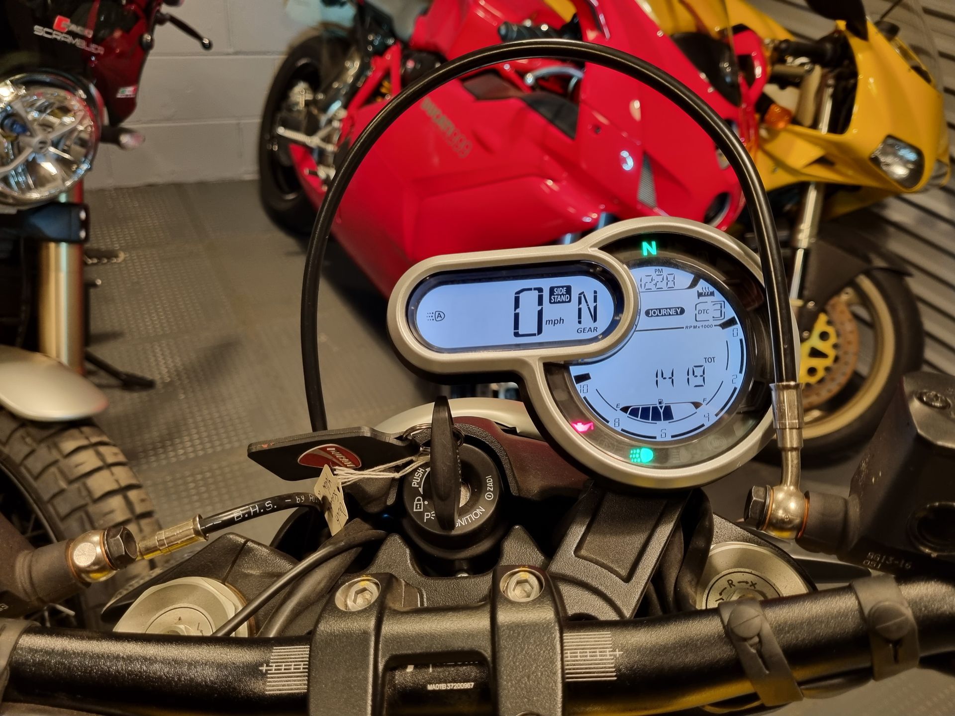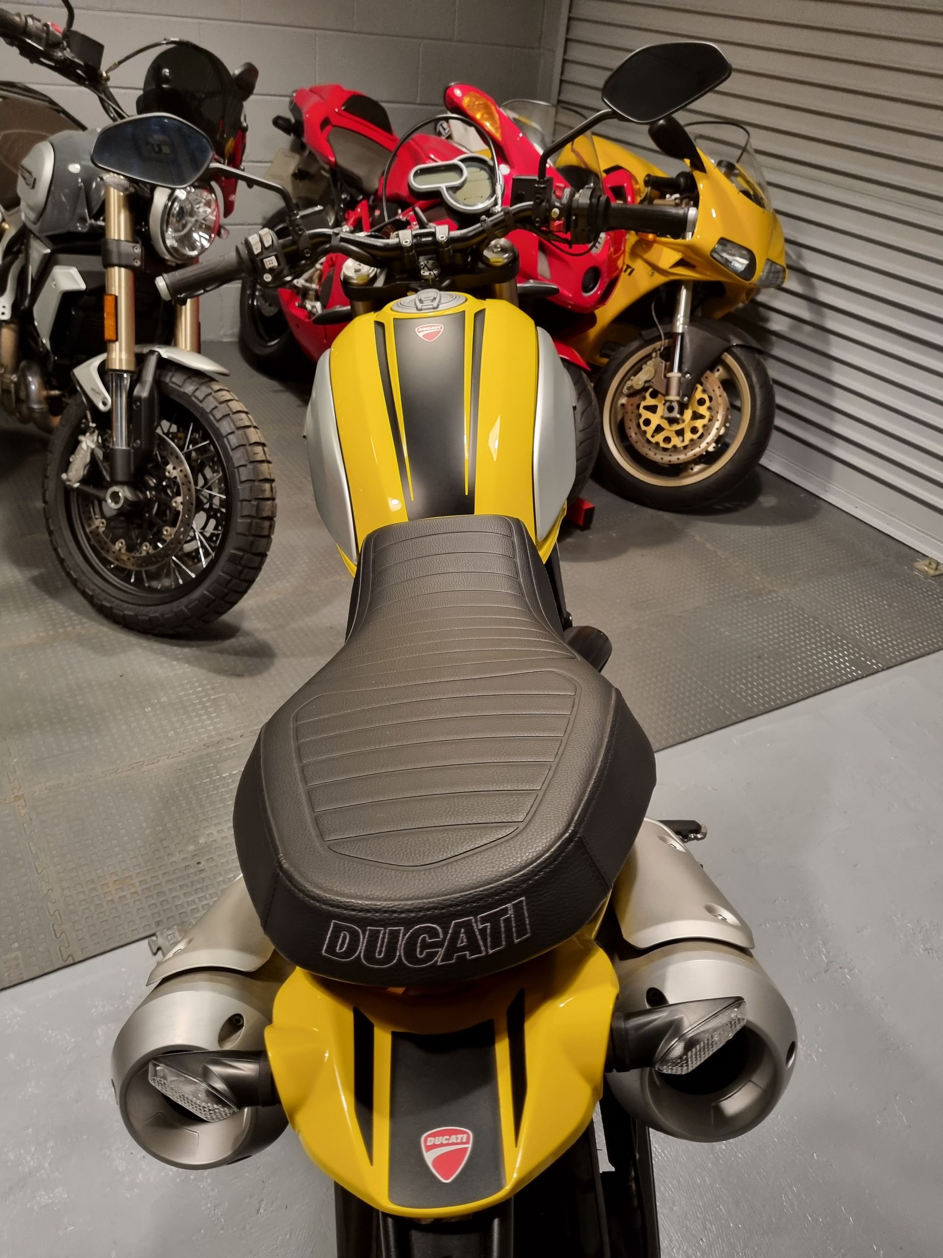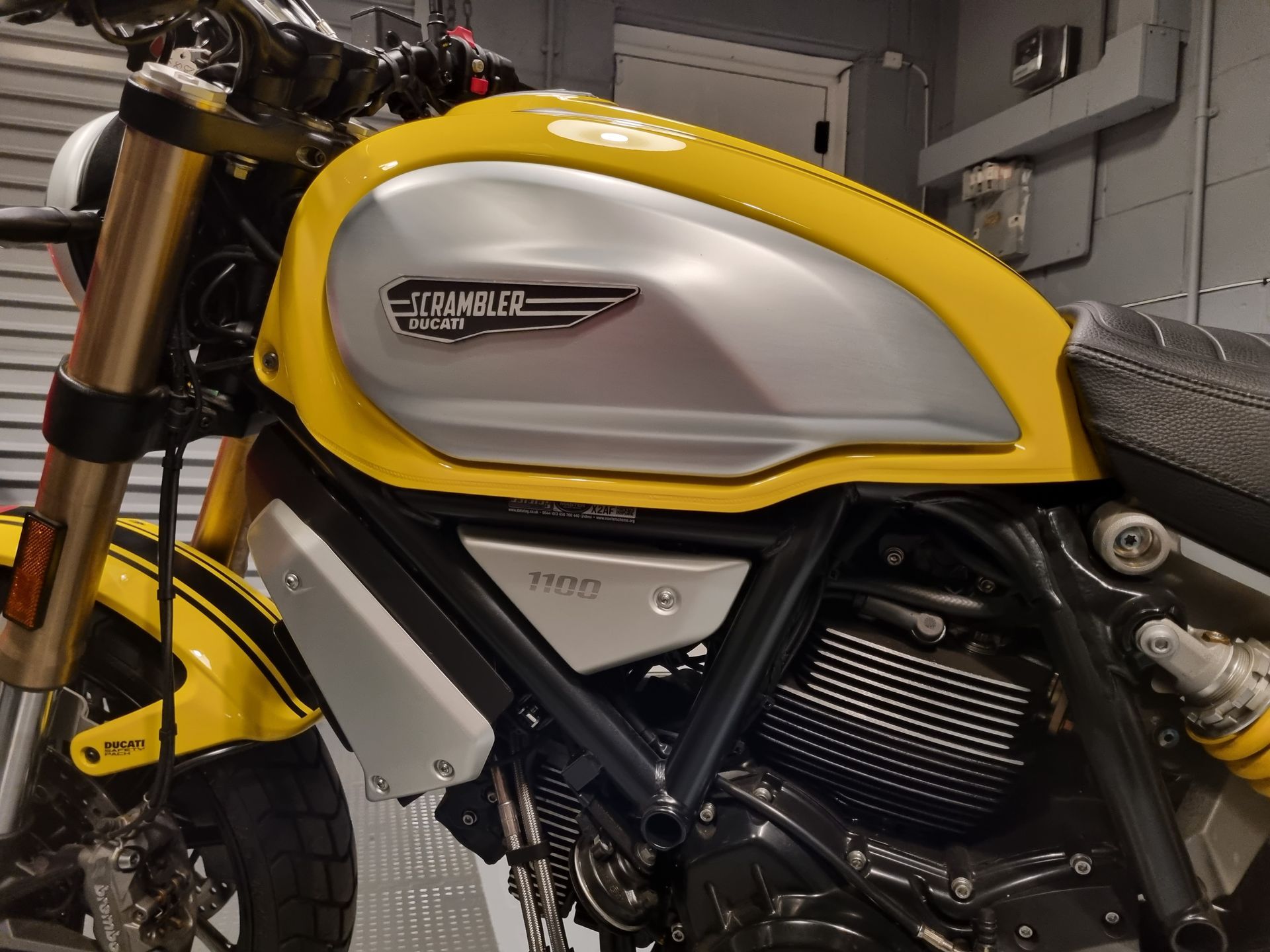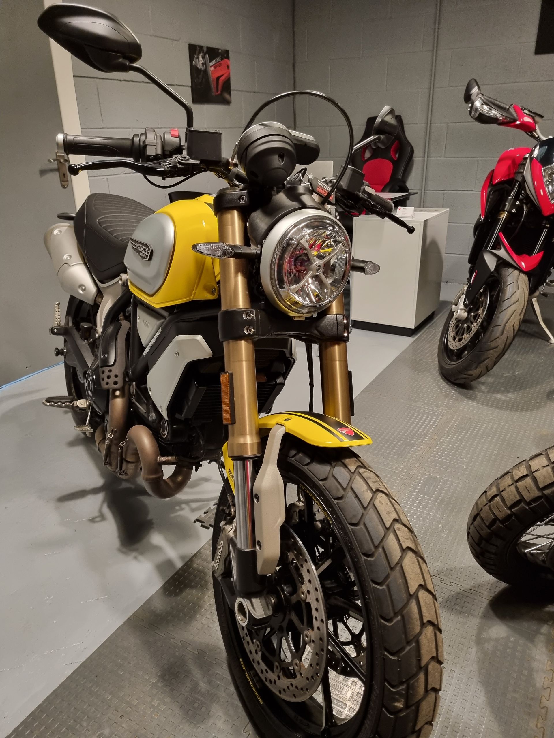 Here we have a 2019/69 plate Ducati Scrambler 1100 in Striking Yellow, with just 1419 miles on the clock. All her keys and booklets. 2 stamps to date. FDSH. She is a completely standard bike, benefitting from a Ducati safety pack, Brembo brakes, Heated grips, Adjustable forks and Ducati traction control. From end to end the bike is a real credit to her former keepers. She looks really striking in the yellow.