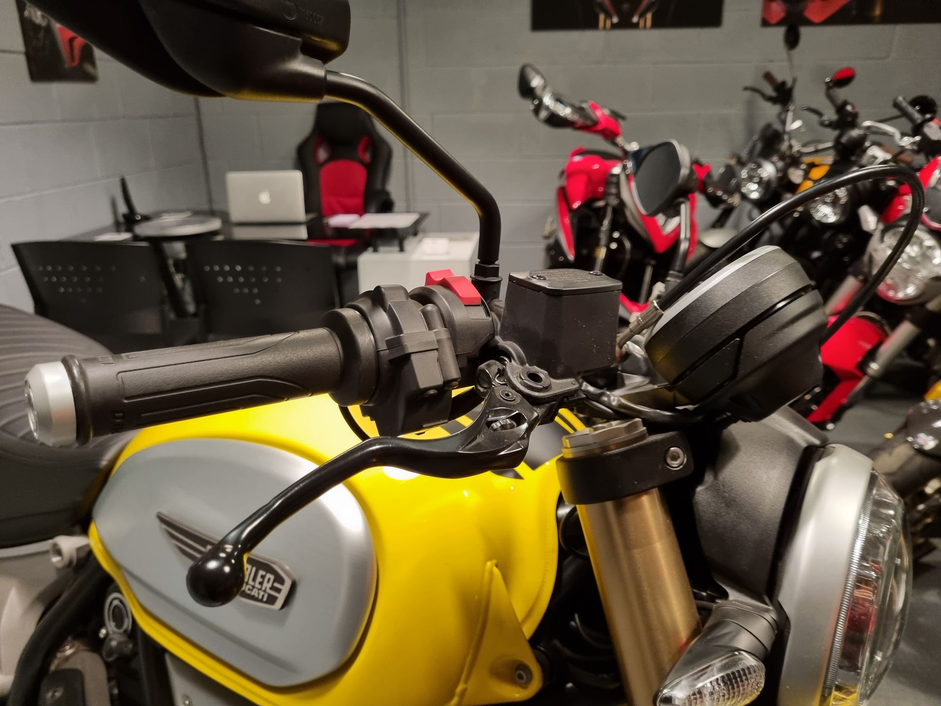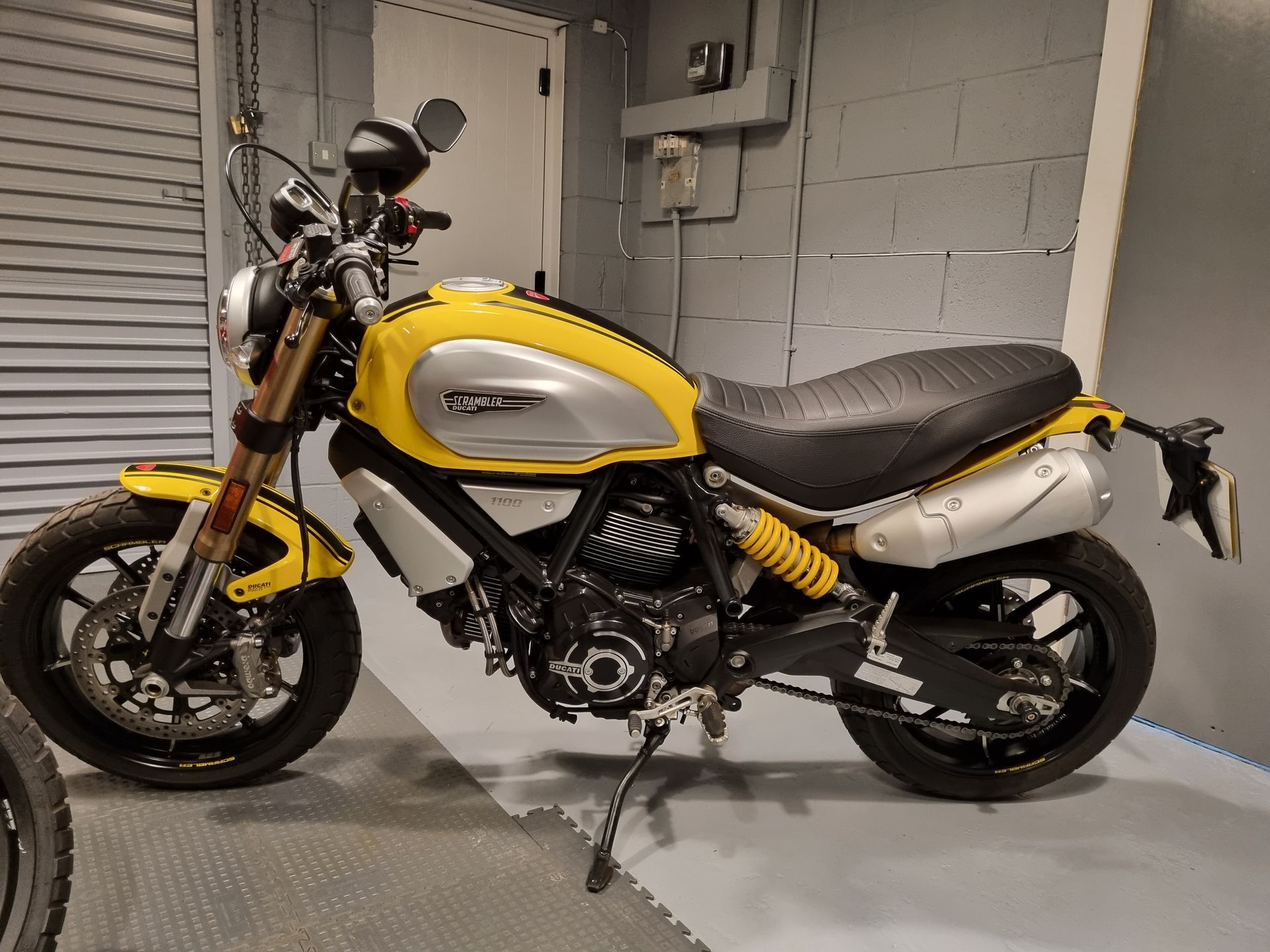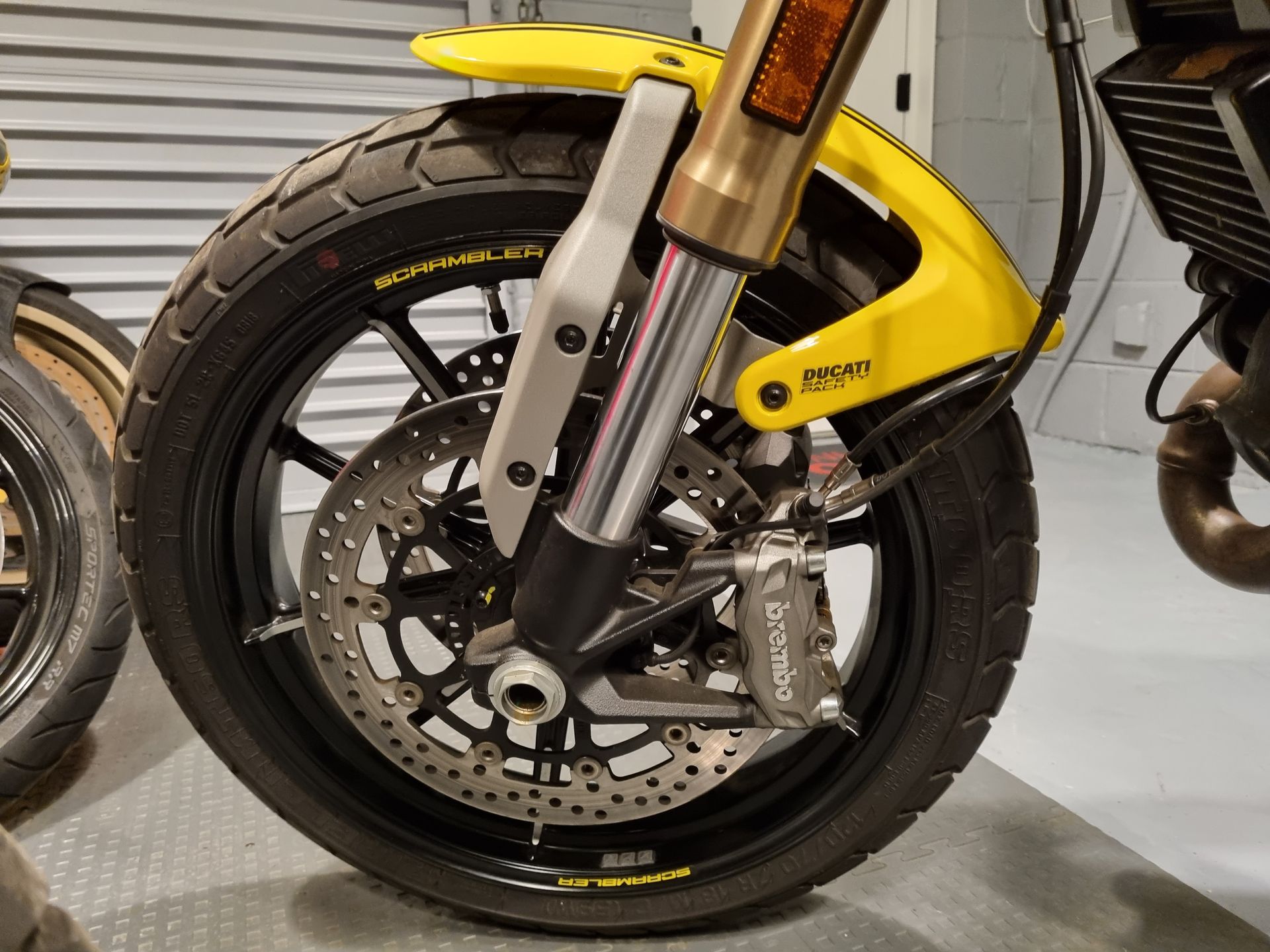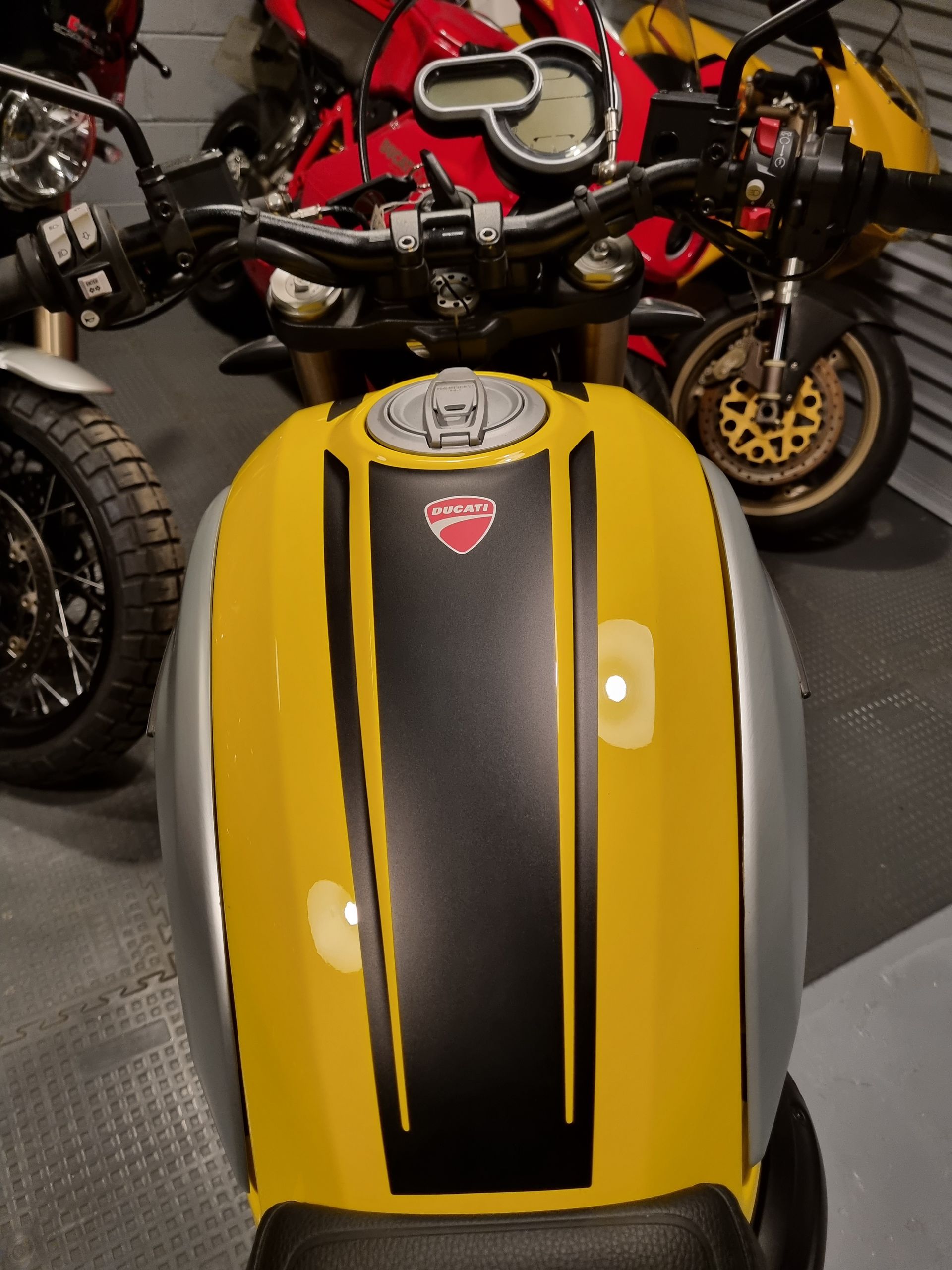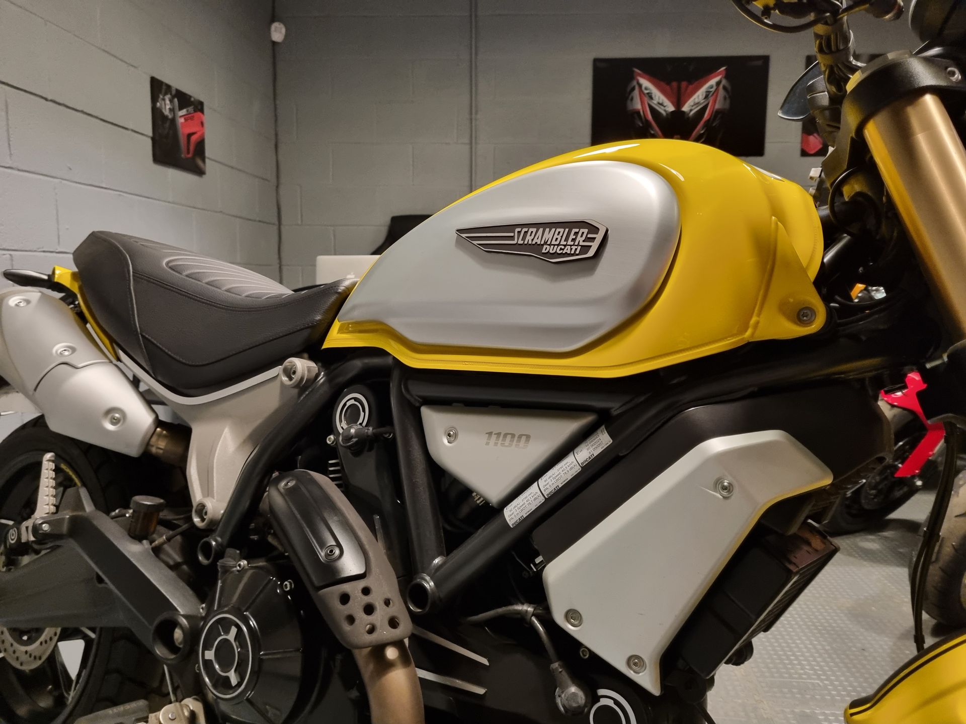 Here we have a 2019/69 plate Ducati Scrambler 1100 in Striking Yellow, with just 1419 miles on the clock. All her keys and booklets. 2 stamps to date. FDSH. She is a completely standard bike, benefitting from a Ducati safety pack, Brembo brakes, Heated grips, Adjustable forks and Ducati traction control. From end to end the bike is a real credit to her former keepers. She looks really striking in the yellow.